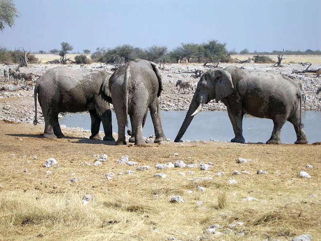 Jednym z najciekawszych miejsc w parku jest oświetlony w nocy wodopój w rejonie Okakuejo, który w nocy odwiedzają słonie i inne zwierzęta.