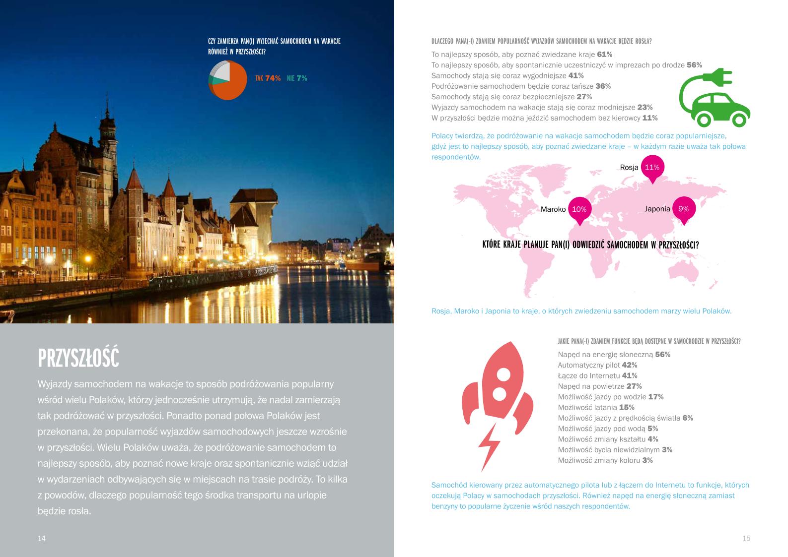 Raport bazuje na statystycznym zestawieniu danych zebranych od 1000 osób, które odpowiadały na pytania dotyczące podróżowania. Zgodnie z jego wynikami wakacyjne wyjazdy autem to forma wypoczynku bliska sercu Polaków. W tym roku aż sześciu na dziesięciu Polaków (czyli 60%) wyjedzie na urlop samochodem. Czechy i Niemcy to kraje, które planuje odwiedzić największa liczba rodaków – po 22% każde z tych państw. Niżej na liście popularnych miejsc plasują się Chorwacja i Włochy, wybrane przez odpowiednio 16% i 12% respondentów. Często wymieniane przez respondentów są również Austria i Węgry.